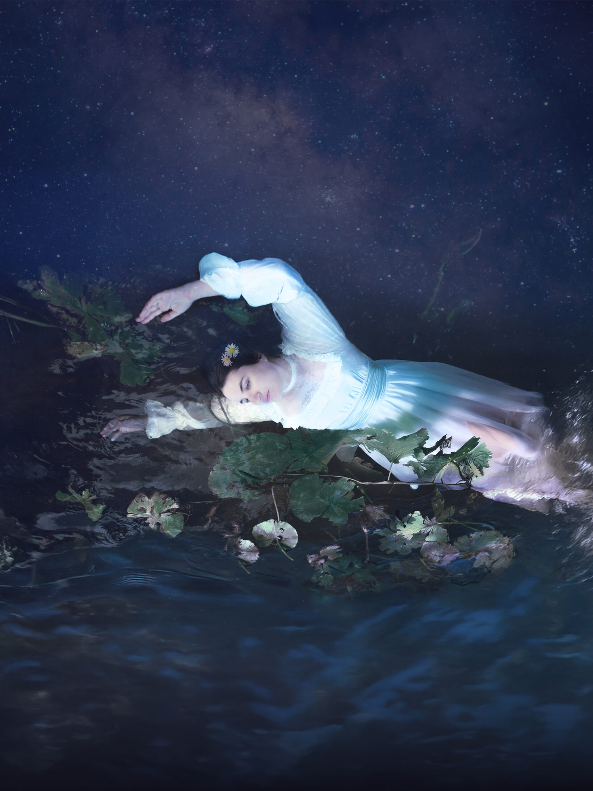 Céline Mermier offered two bluish-toned self-portraits taken in Mountshannon, reflecting a period of deep melancholy and creative reconnection. Her work evokes water as a space of restoration, inviting introspection and emotional surrender. A celebrated photographer originally from France, Céline recently received the title of Photographer of the Year in Dublin.